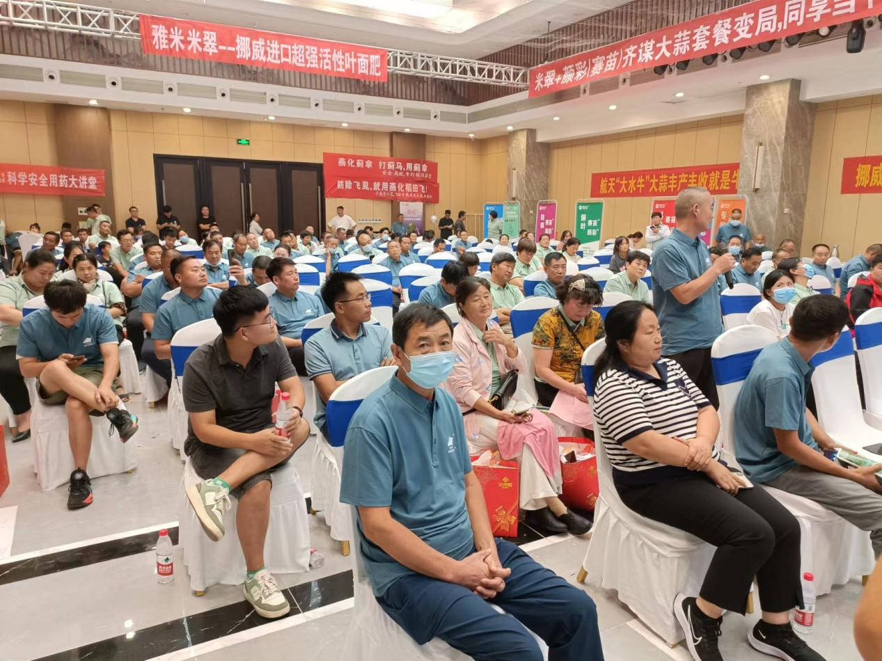 2022年8月26日,挪威雅米联合邳州国光农资召开大蒜苗期叶面喷施套餐专场会议,共有120位核心零售店人员及邳州、新沂、沛县、丰县等优秀经销商共同参加。